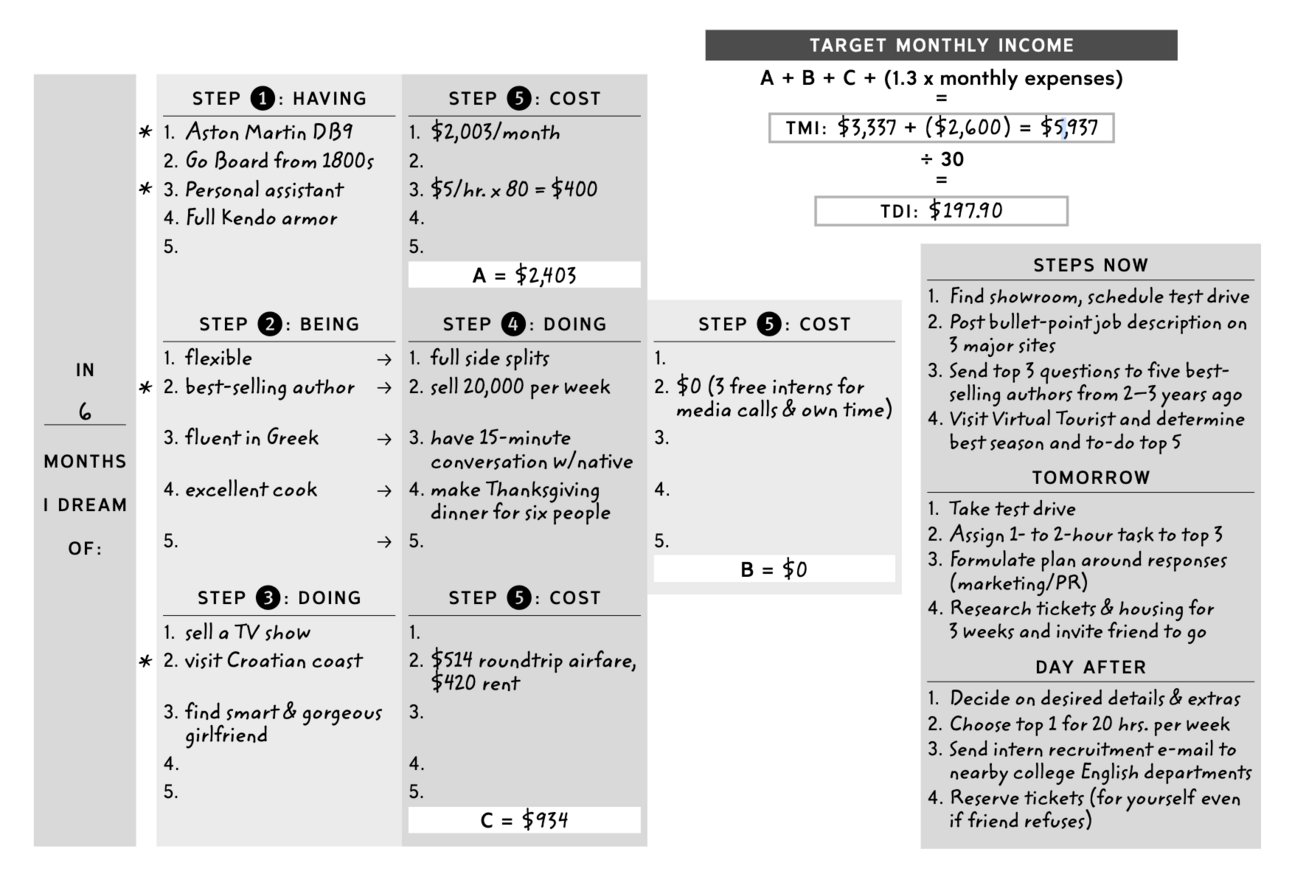 Then I came across Tim Ferris’ Ideal Lifestyle Costing exercise, which changed my perspective of what constraints I was putting on myself and what I was actually prioritizing vs. what I thought I was prioritizing.