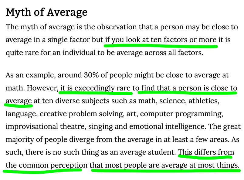 When we teach children (or adults) in a lecture and test-based environment, the physical and digital learning environment is a very one-size-fits-all approach. And we’re falling into the Myth of Average.